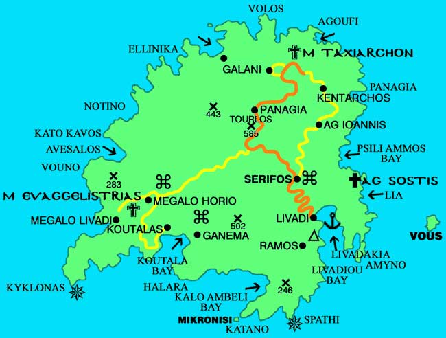 Η Σέριφος είναι γεμάτη από μονοπάτια που διασχίζουν σχεδόν όλο το νησί συναντώντας όμορφα χωριά, γραφικά ξωκλήσια, στοές μεταλλείων και μαγευτικές παραλίες. Τα μονοπάτια της Σερίφου, ένα δίκτυο που ξεπερνά τα 46,4 χιλιόμετρα, δημιουργήθηκαν απ' τα αρχαία χρόνια για τις ανάγκες της αγροτικής και κτηνοτροφικής ζωής αλλά και για τα Μεταλλεία της Σερίφου (όπως ο δρόμος των Μεταλλωρύχων) και είχαν καθημερινή χρήση. Συναρπαστικές διαδρομές για να εξερευνήσετε, ορεινά χωριά, εγκαταλελειμμένους οικισμούς, μεταλλευτικές στοές, κελιά (μικρά αγροτικά κτίσματα) που θα σας αποκαλύψουν την μοναδική λαϊκή αρχιτεκτονική, την πλούσια ιστορία και το ιδιαίτερο φυσικό κάλλος της Σερίφου.